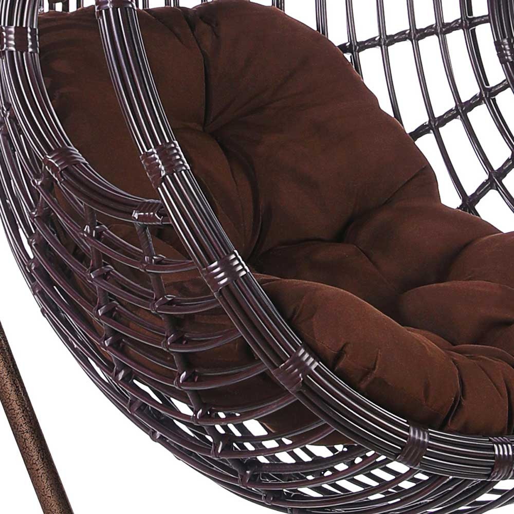 Материал плетения на корзине: искусственный ротанг коричневого цвета. Подушка коричневая. Ткань с водоотталкивающей пропиткой.