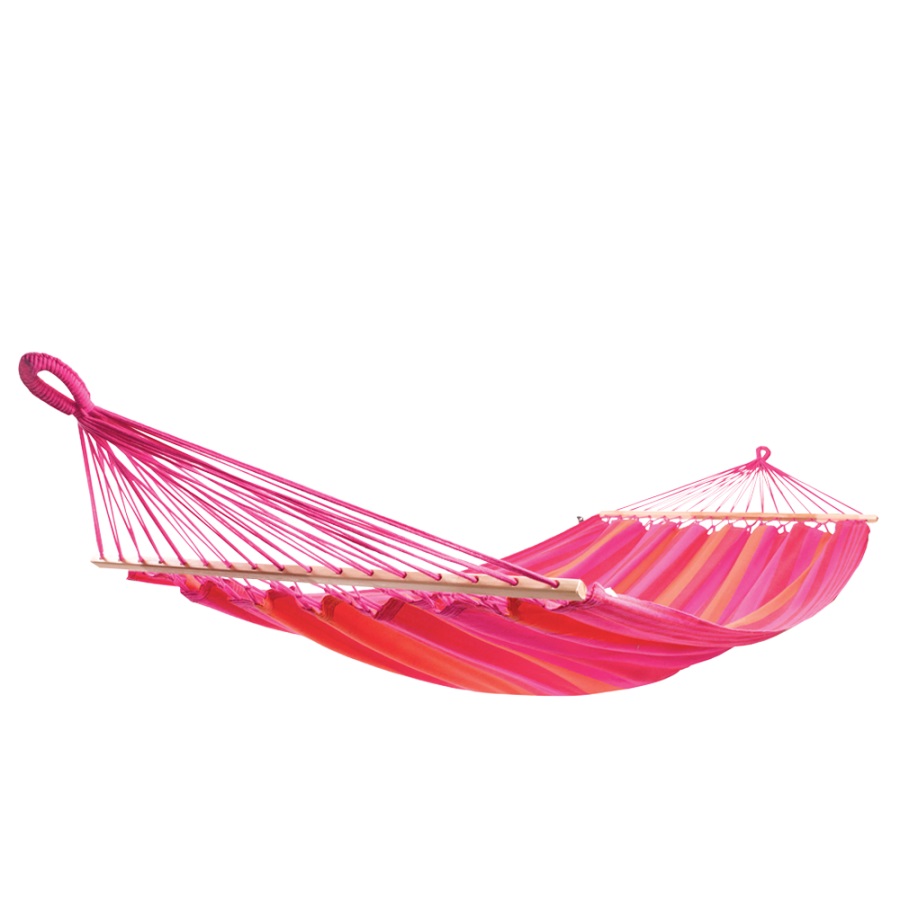 Двухместные гамаки с деревянными перекладинами. Натуральный хлопок, качественный материал перекладин и веревок. Допустимая нагрузка - 160 кг. Благодаря отличным краскам, не подверженным выцветанию, гамаки прослужат долгие годы. Небольшой вес и компактность делают легкими хранение и транспортировку.