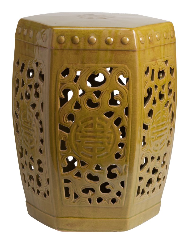Это предмет мебели, который сочетает в себе сразу две функции — его можно использовать и как стол, и как табурет, в зависимости от вашего желания. Примечательно, что эта модель выполнена не из дерева, как следовало бы ожидать, а из грубой керамики. Столешница, она же сидение, выполнена в форме шестиугольника, боковые грани украшены оригинальным ажурным узором, а в общем напоминает бочонок. Столик-табурет выполнен в зеленовато-болотном цвете, станет полезным приобретением в первую очередь для маленьких помещений, в которых остро стоит вопрос экономии полезного пространства.