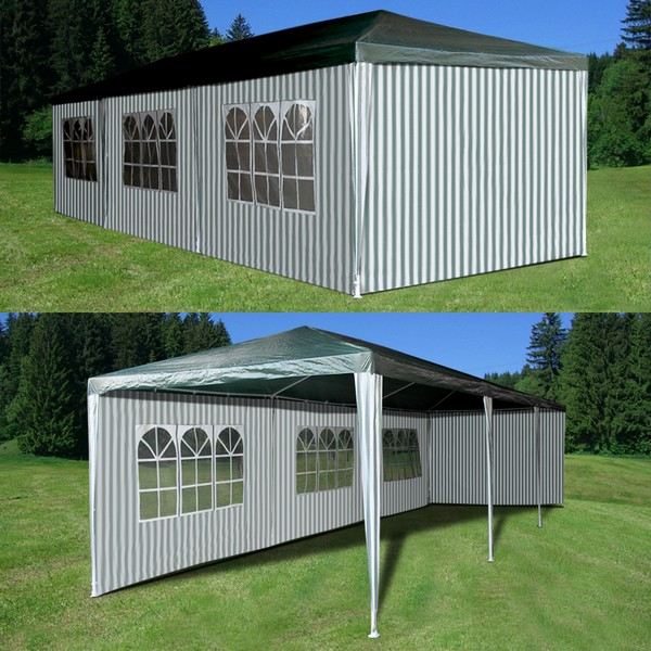Размер: 3x9 м. Высота: в коньке 2,6 м. Каркас: стальная труба D32/25/25 мм. Материал: полипропиленовая ткань - 120гр. Стенки: 6 стенок с окнами и 2 глухие. Цвет: Green-White. Объем: 0,08 куб.м., вес: 26 кг. Размер короба: 120х37х24.