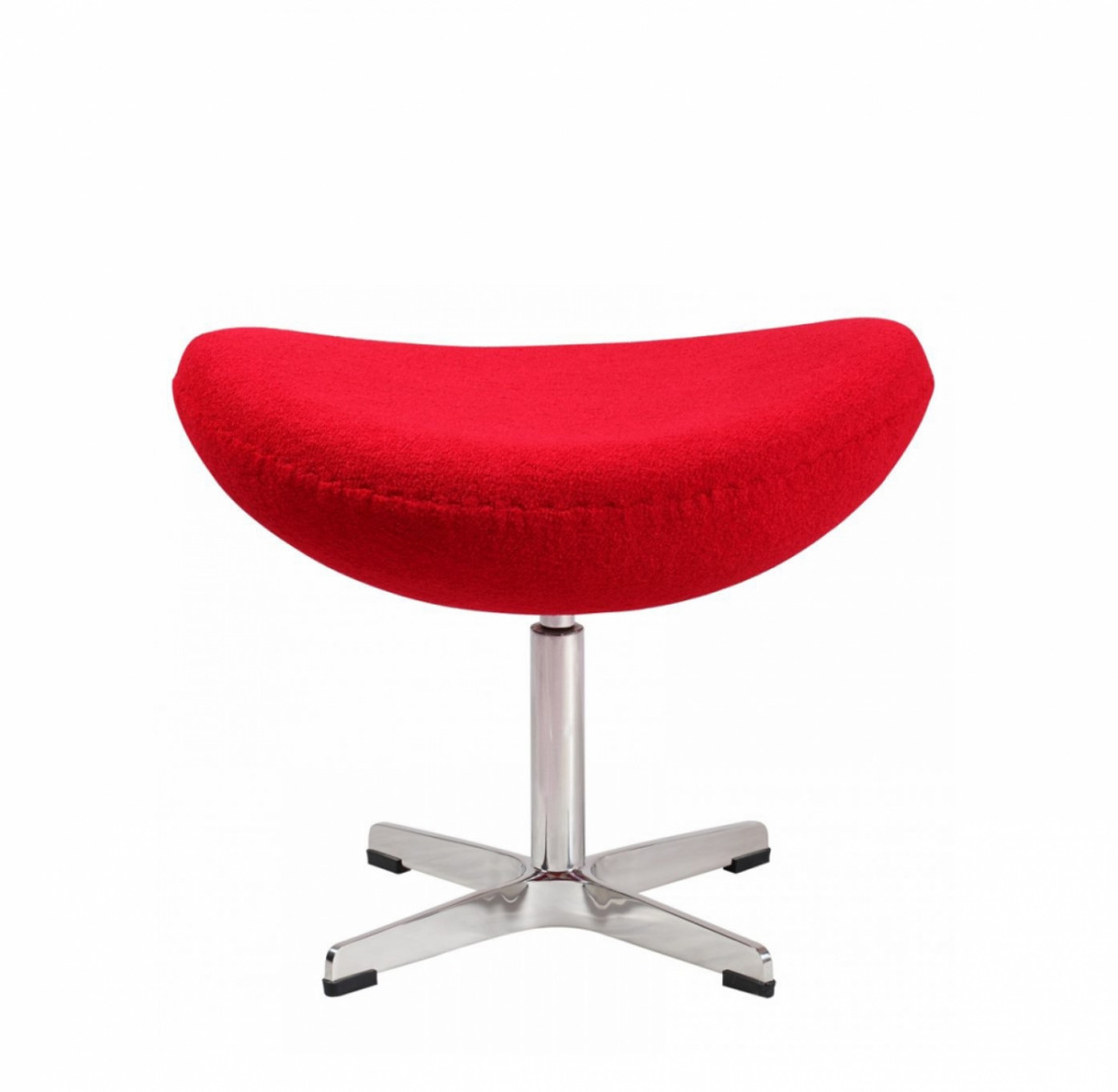 Лаконичная и удобная оттоманка Egg Ottoman на устойчивом металлическом основании, имеет приятную обивку из кашемира яркого красного цвета, которая дарит приятные ощущения, она достаточно плотная, устойчива к протиранию, легко чистится. Данная модель оттоманки является логическим продолжением дизайнерского кресла Egg. При этом ее можно использовать вполне самостоятельно, либо эффектно дополнить ею знаменитое кресло. Крестообразные металлические ножки из нержавеющей стали переходят в основание, которое служит надежной поддержкой сидению. Обивка из 100 кашемира.