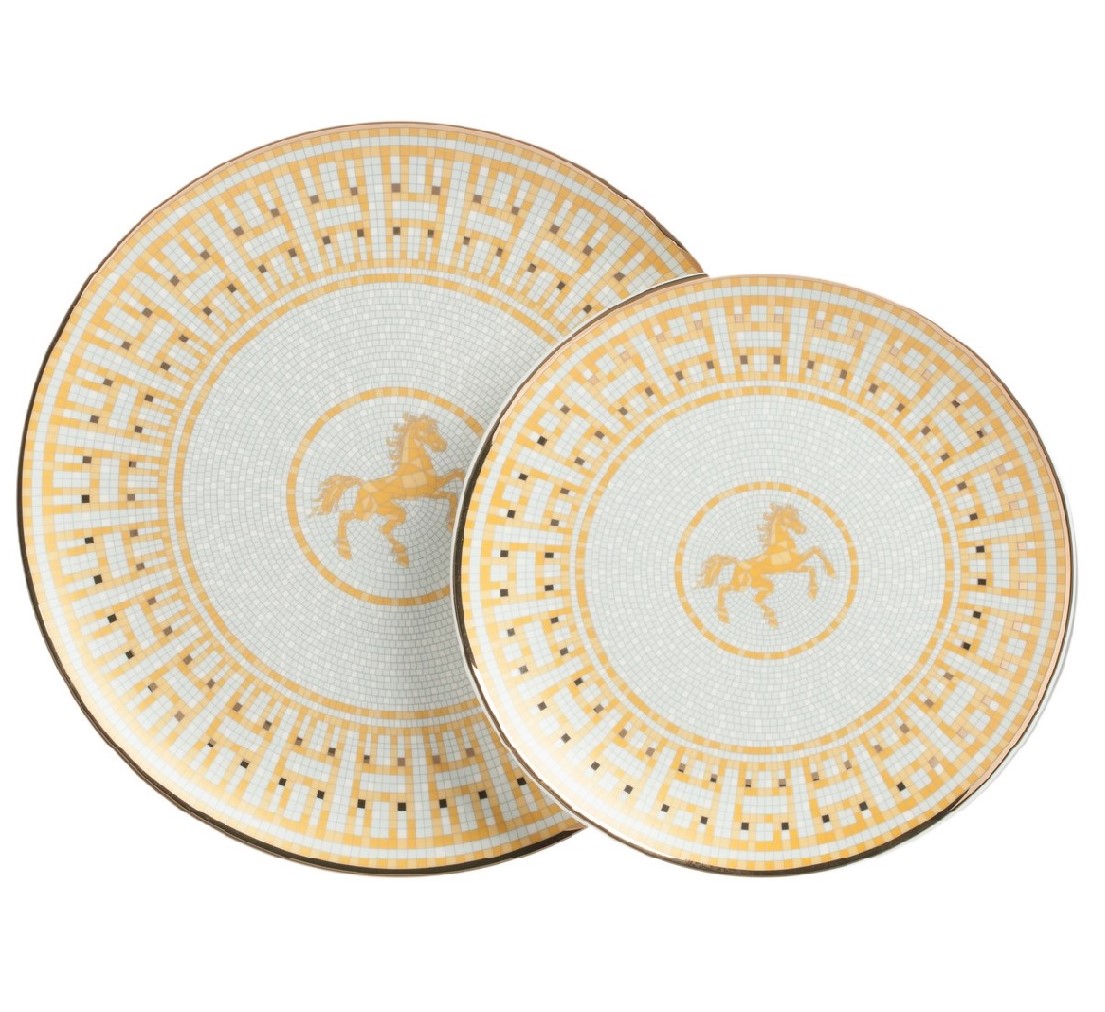 Комплект тарелок Dominion выполнен из костяного фарфора. Края тарелок украшены орнаментом в золотом цвете. По центру тарелки на сером фоне изображена гарцующая лошадка. Комплект тарелок легко можно сочетать с другими предметами данной коллекции, которые украсят ваш стол. В комплект входят две тарелки диаметром 25,5 и 20 см.