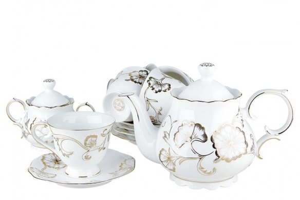 чашка 200мл 6шт, чайник 1,1л 1шт, сахарница 280мл 1шт, блюдце 6шт