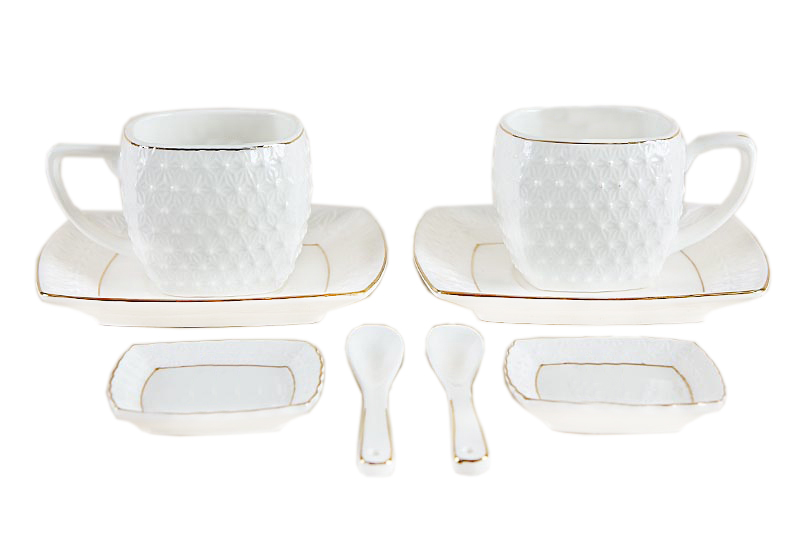 Посуду отличает лёгкость, молочно-белый цвет, отводка с содержанием 10-ти процентного настоящего золота, оригинальность формы и рельефа.