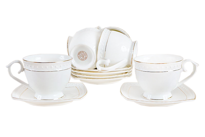 Эксклюзивный рельеф Снежинки, украшающий посуду Снежная королева чашка 90мл 6шт, блюдце 6шт