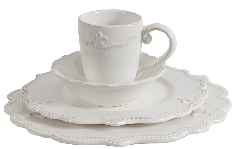 В комплект входят: тарелка 29,5*29,5 см, тарелка 24,5*24,5 см, миска 14,5*14,5 см, чашка 12*8 см.