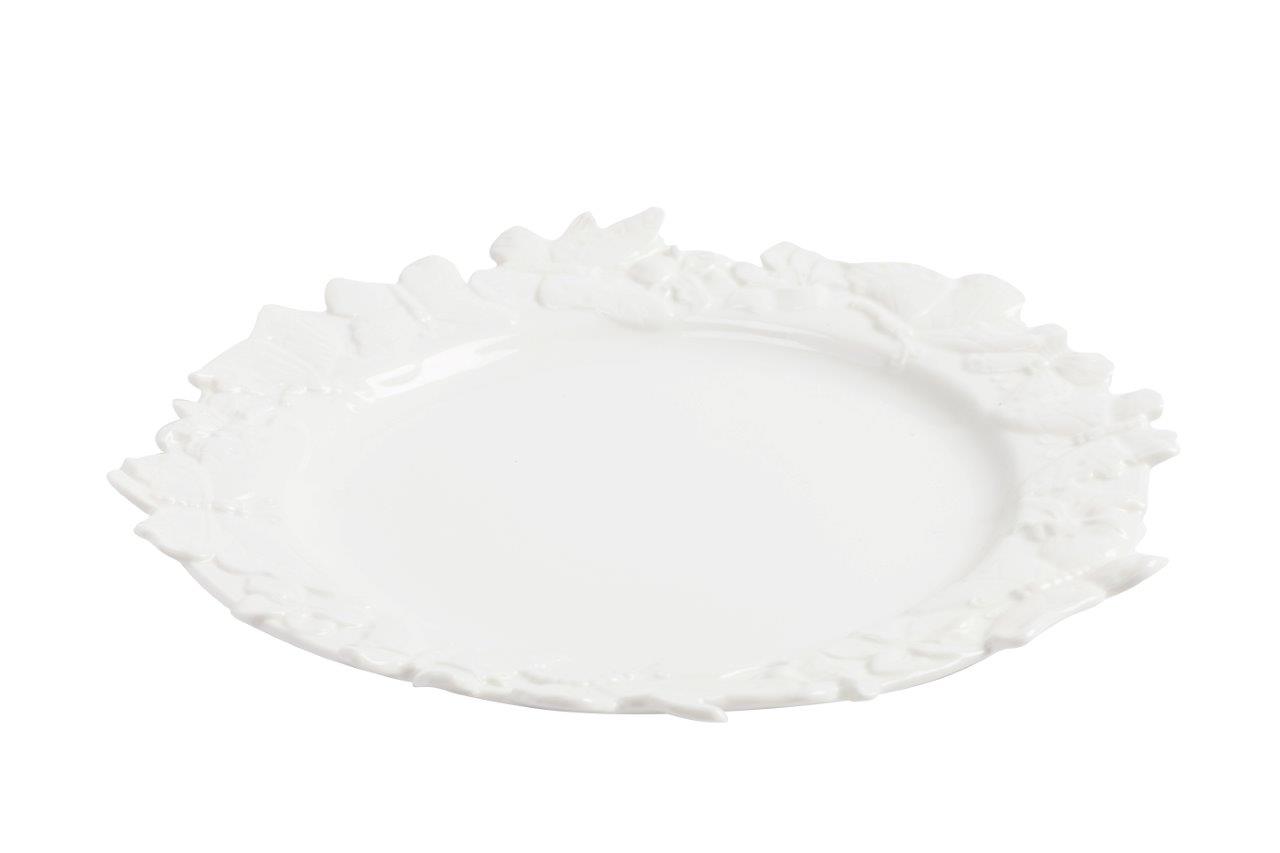 Тарелка белого цвета Charming изготовлена из керамики с нанесением по краю рельефного рисунка. Тарелку можно приобрести отдельно или в комплекте с другими предметами декора из коллекции.