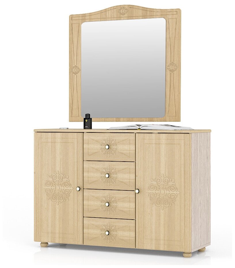 Комод широкий К-17 с зеркалом Онега, цвет лен/ясень шимо светлый