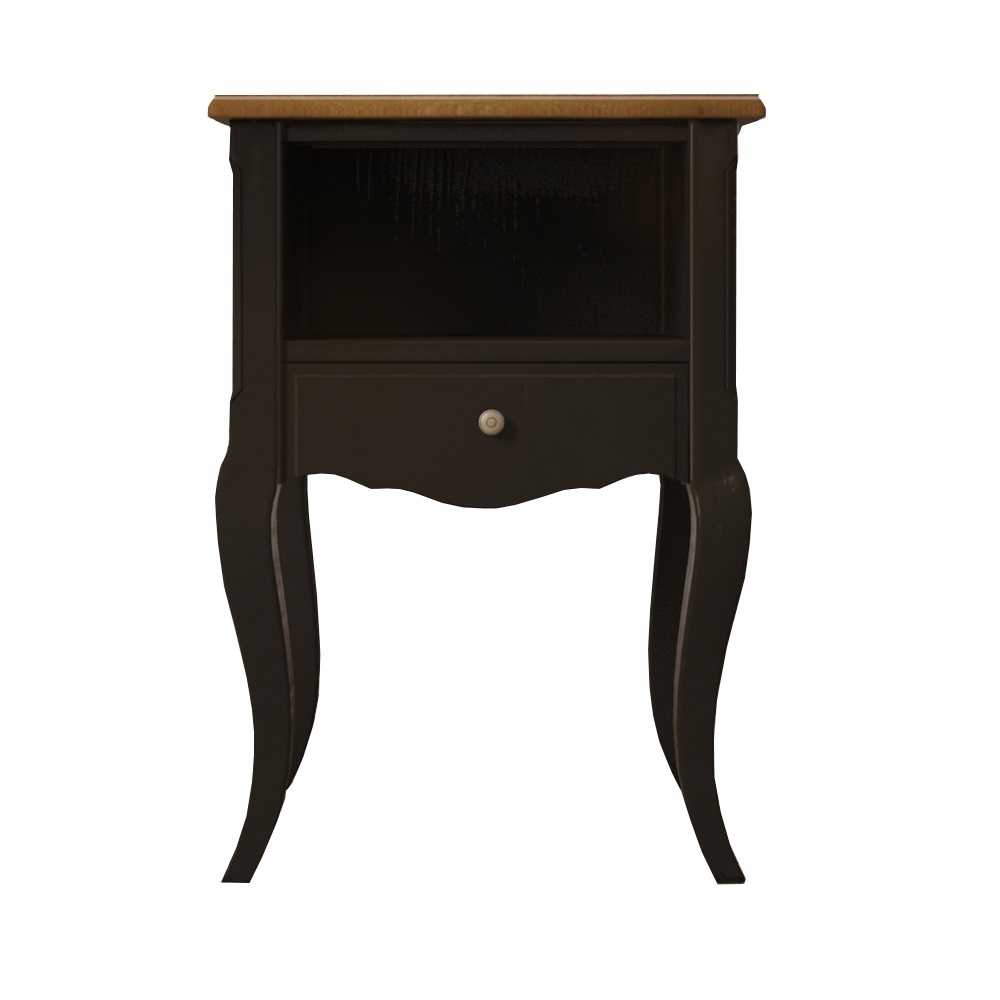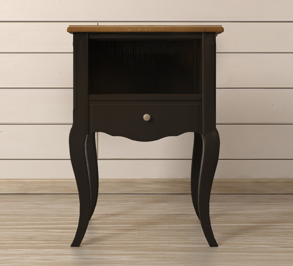 Цвет: Черный,Глубина, см: 32,Высота, см: 65,Ширина, см: 46,Материал: Массив березы,Массив ясеня,Вес: 7 кг,Размер: Маленькие,Стиль: Прованс,Особенности: Столешница - ясень,Цвет столешницы: Орех,Дизайн: Франция,Количество ящиков: 1,Характеристики: С ящиком,