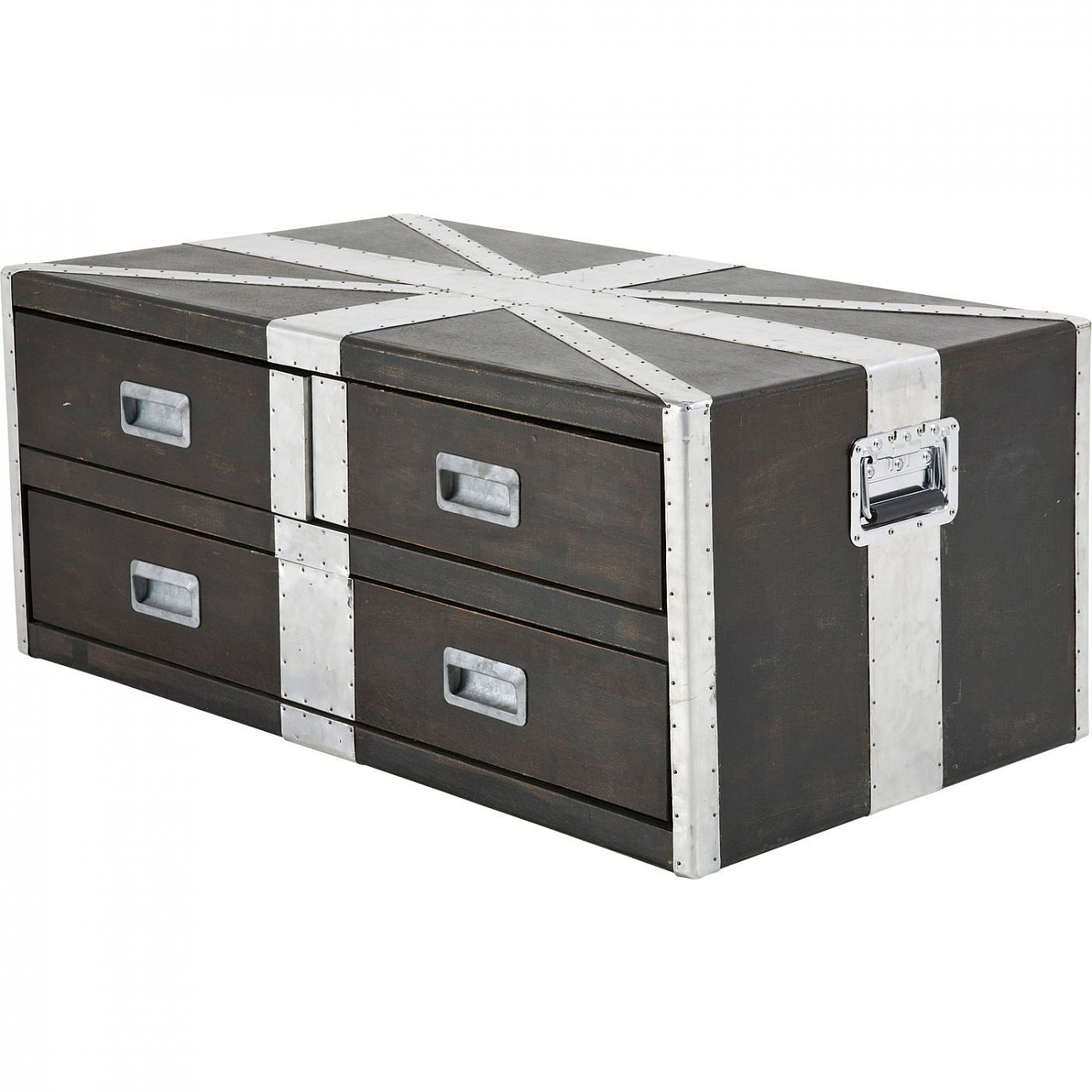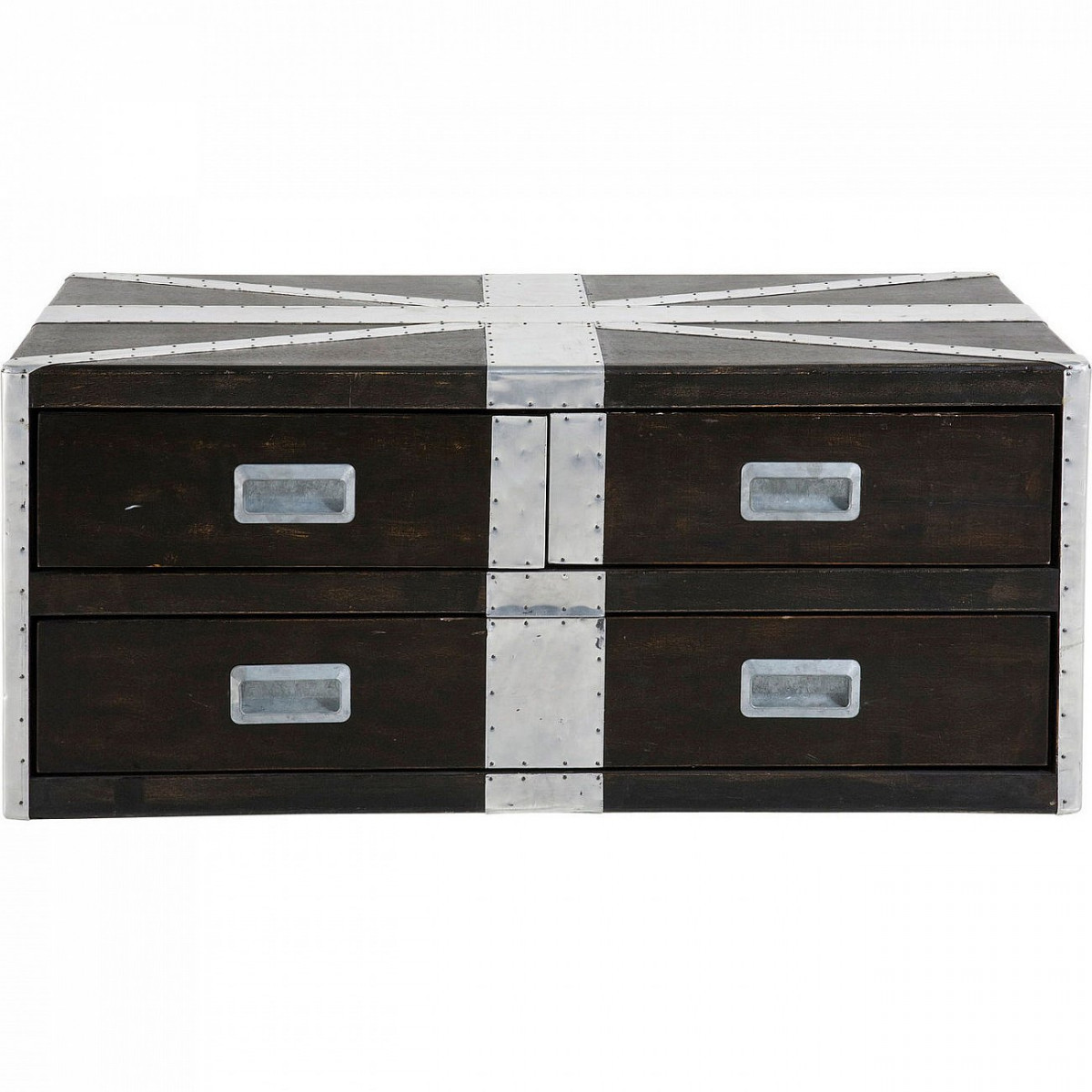 Stylish coffee table in the British flag design in cool black with matt shiny fittings. The four drawers will store your treasures and magazines, newspapers and bits and pieces.