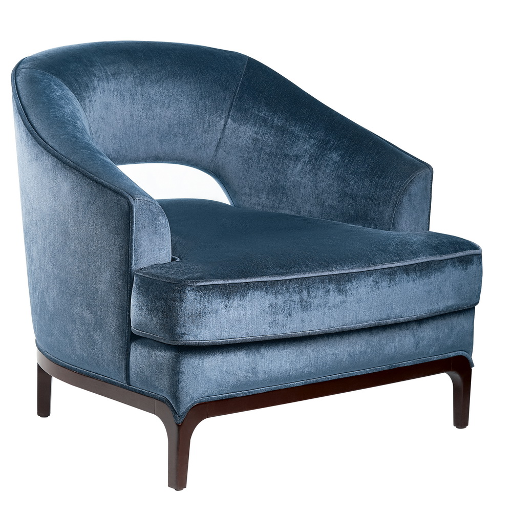 Кресло POL имеет уникальный стиль и форму, которая не останется не замеченной. Деревянный каркас и деревянное обрамление по периметру внизу. На спинке - открытая выемка создает неповторимый шарм данной модели Кресло POL голубое.