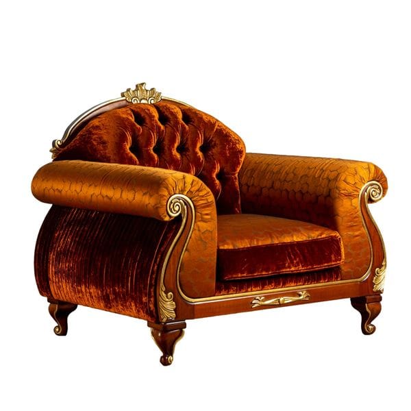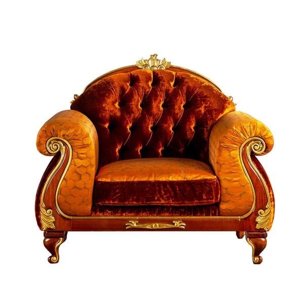 Кресло Stradivari – изящное классическое произведение мебельного искусства. Выступающие очертания изголовья коронуют экспрессивные завитки аканта. Мягкая спинка мебели декорирована пиковкой. Роскошная, шелковая или атласная плиссировка, украшающая основание и спинку, делает модель неповторимой. Мебель, с элегантным силуэтом, на резных декоративных ножках-кабриоль выглядит легко и изящно.Каркас:массив дерева и многослойная влагостойкая фанера высшего сорта, покрытая пенополиуретаном и синтепоном. Эластичное основание сидения и спинки из резинотканевых ремней.Наполнение спинки:высокоэластичный, латексоподобный ППУ, покрытый 100 полиэстеровым слоем.Наполнение локотника:высокоэластичный, латексоподобный ППУ различной плотности, покрытый 100 полиэстеровым слоем.Наполнение подушек сидения:высокоэластичный, латексоподобный ППУ высокоэластичный Memory foam.Съемность чехлов:съемные чехлы с подушек сиденья. Кресло STRADIVARI оранжевое.
