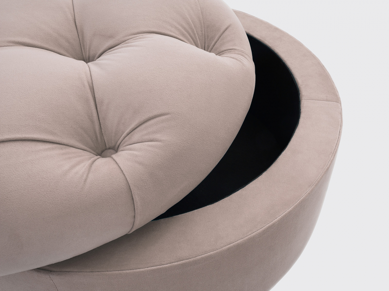 Пуф с емкостью для хранения, декорированный пуговицами.