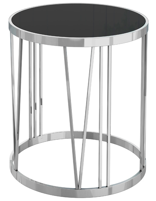 Столешница - стекло черного цвета, основание - хромированная нержавеющая сталь