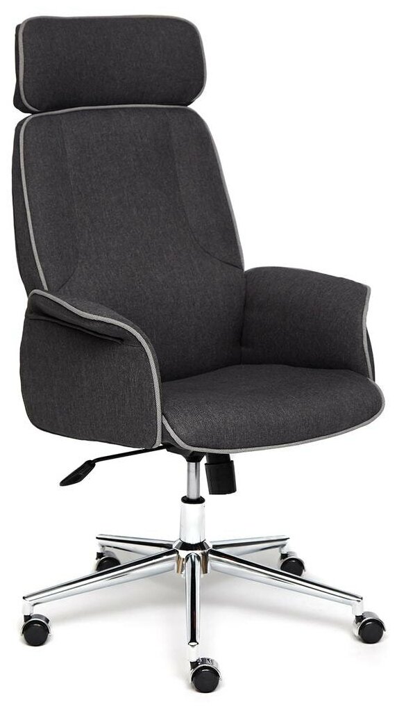 назначение: офисное, конструктивные особенности: подголовник, подлокотники, колеса (ролики), газлифт, функциональные особенности: фиксация механизма качания, мягкое сиденье, прорезиненные колесики, материал крестовины: металл, максимальная нагрузка: 120 кг, регулировка: высоты сиденья, жесткости качания