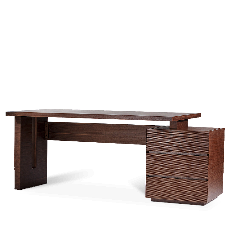Строгие линии, четкие детали, тонкое тиснение на выдвижных ящиках делают изделие настоящим загляденьем. Массив ам... Письменный стол Form коричневый американский