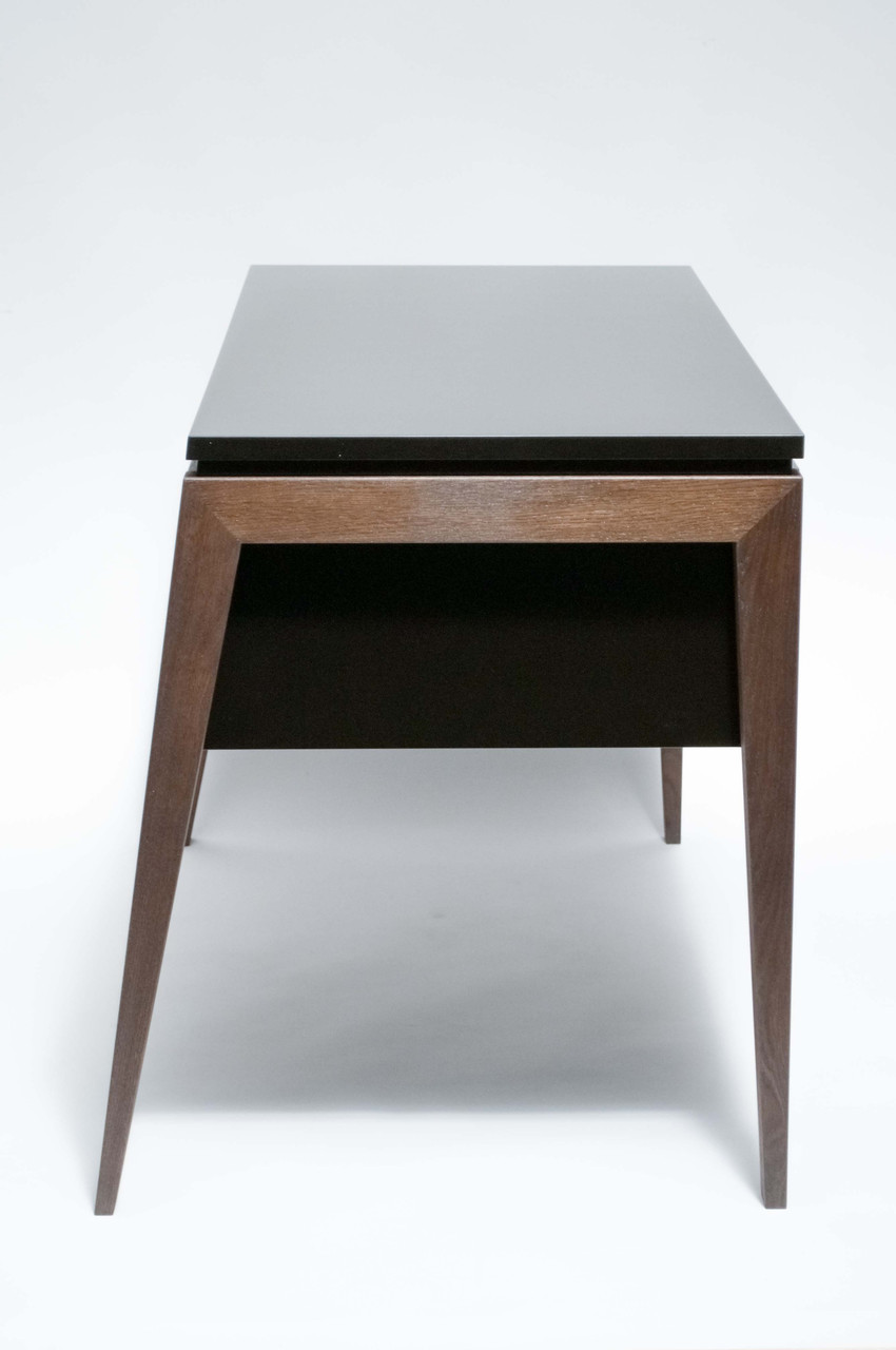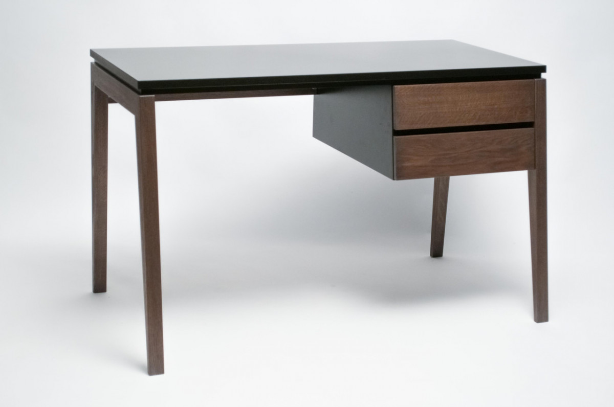 Фасады с обеих сторон стола рабочего стола Bureau позволяют располагать его по центру помещения. Внешний вид стола сдержанный и солидный, благодаря темной отделке дуба и черному цвету столешницы. Ящики оснащены скрытыми направляющими полного выдвижения с доводчиками.