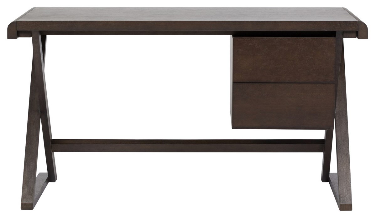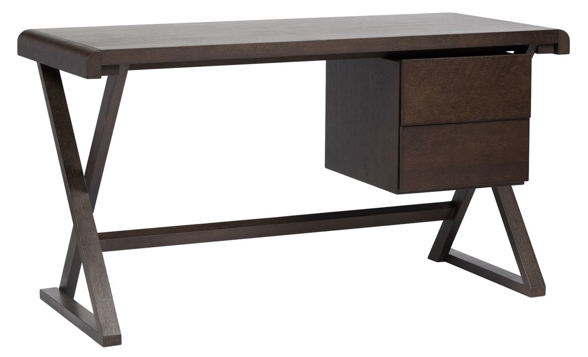 Рабочий стол Preston на фоне большого количества столов особенно выделяется своим дизайном и вызывает интерес у посетителей. Эта оригинальная модель средних габаритов станет стильным и модным украшением вашего рабочего кабинета. Столешница чёрного цвета, выполненная из МДФ, прекрасно сочетается с металлическим корпусом стола. Под столешницей имеется выдвижной ящик, где можно хранить техническую литературу, различные рабочие инструменты и принадлежности. Стальные ножки модели как бы сливаются, перекрещиваясь у основания конструкции, составляют единую устойчивую опору. Покупка данного дизайнерского стола — прекрасный выбор ценителей стиля минимализм. Рабочий стол Preston коричневый