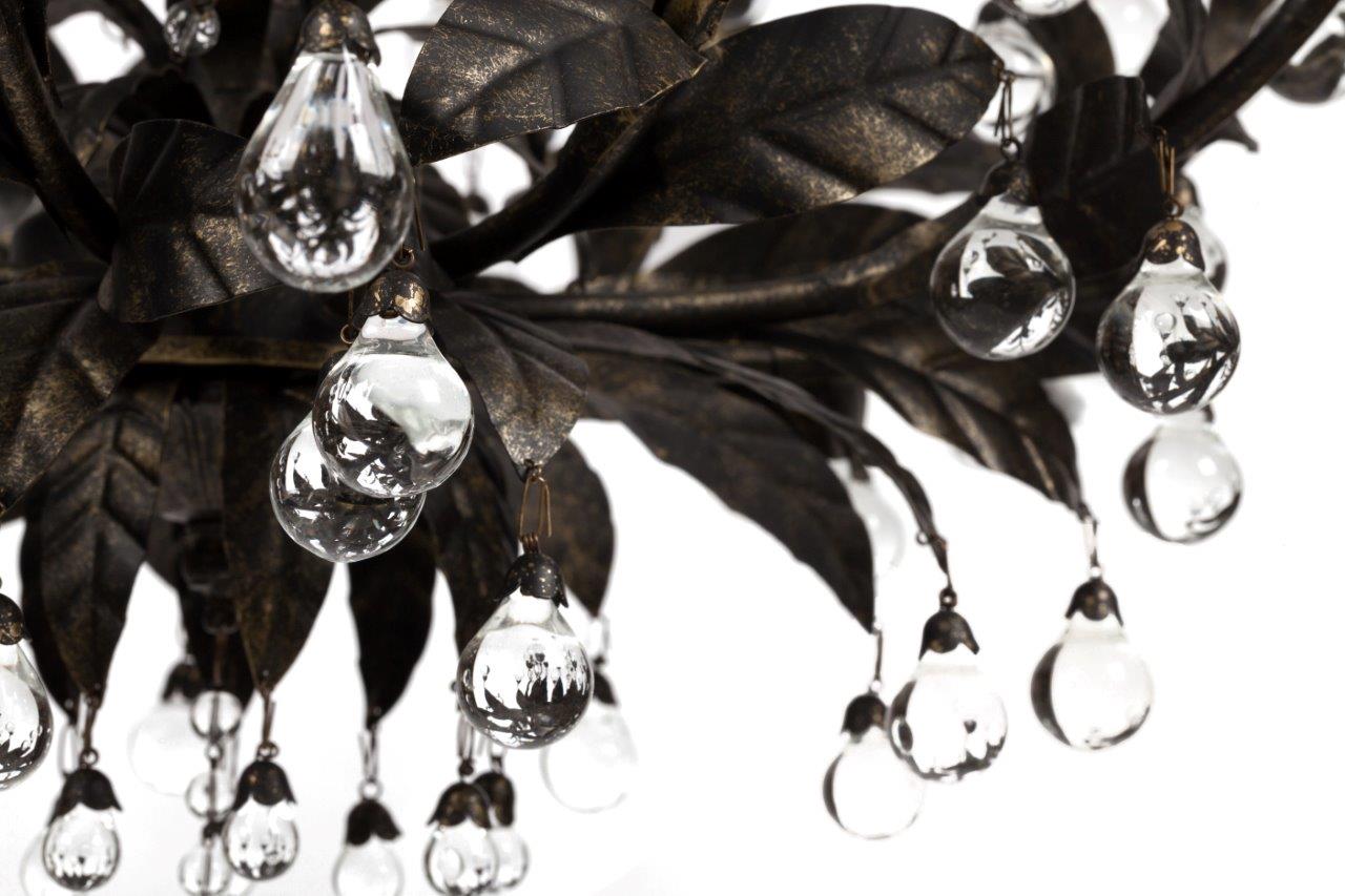 Люстра 19th C. Rococo Iron & Smoke Crystal Round. Изящная люстра 19th C. Rococo Iron & Smoke Crystal Round Vol.II похожа на застывший травяной букет. Она отличается надежным креплением, элегантными подсвечниками, свет от которых пробивается сквозь грани слитков и множество хрустальных подвесок. Красота этой люстры завораживает настолько, что невозможно отвести глаз. Предназначена для использования со светодиодными лампами