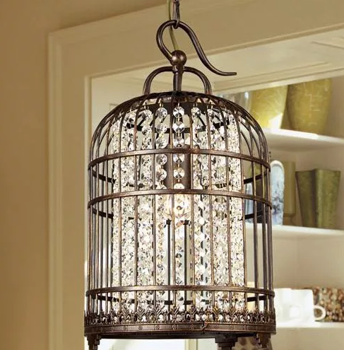 Люстра-клетка Nicolette. Основание окрашенное в кофейный цвет железо, хрусталь, предназначена для использования со светодиодными лампами, лампы не включены в комплект