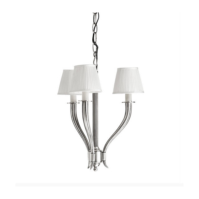 Люстра Mayflower от Eichholtz 3 плафона. Люстра на три рожка освещения. Отделка под античное серебро, абажур классической формы белого цвета.