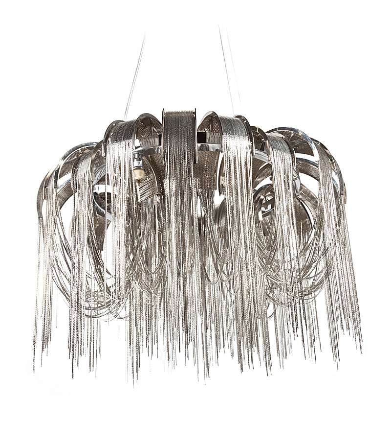 Люстра Terzani Volver L61S. Люстра Terzani Volver представляет собой причудливое переплетение серебристых никелированных цепей и светодиодных лент. Элегантная современная люстра Terzani Volver станет новым дыханием света и претендует на отдельную, важную роль в домашнем интерьере.